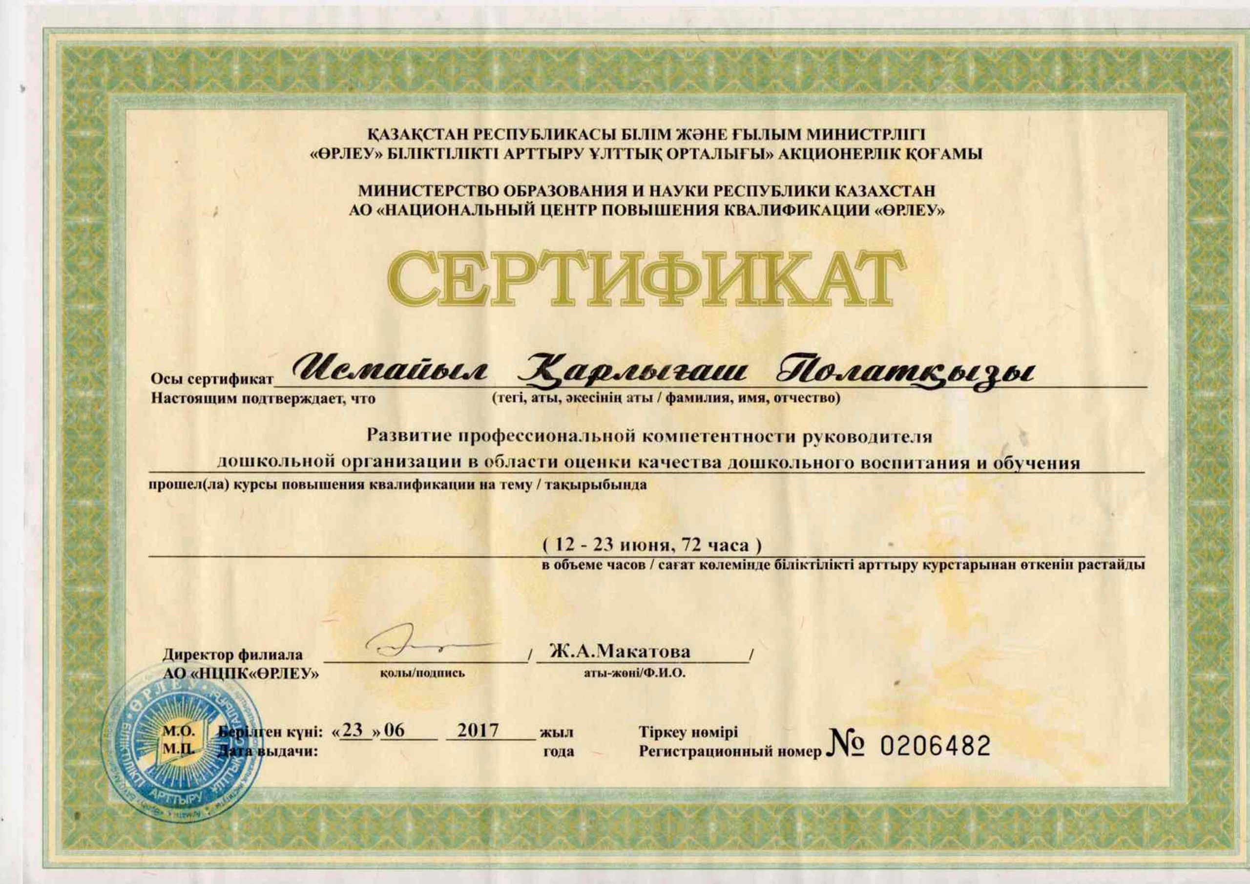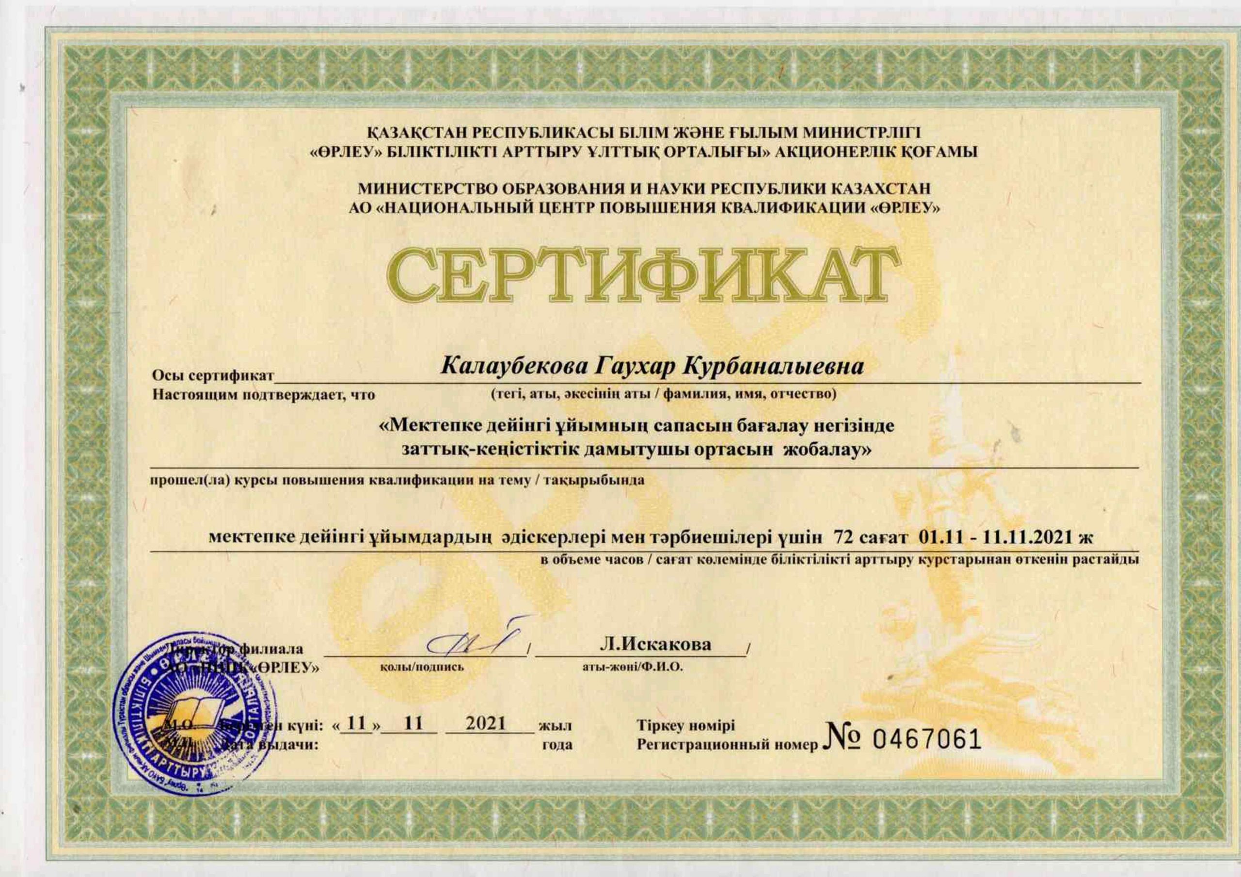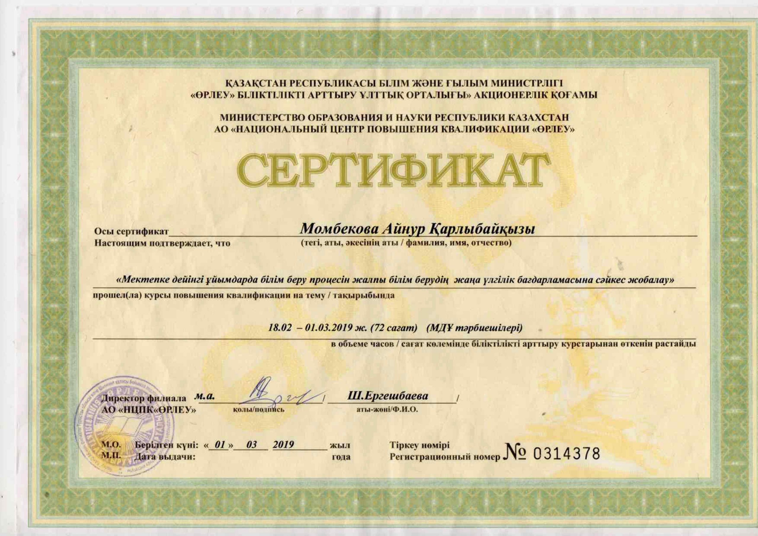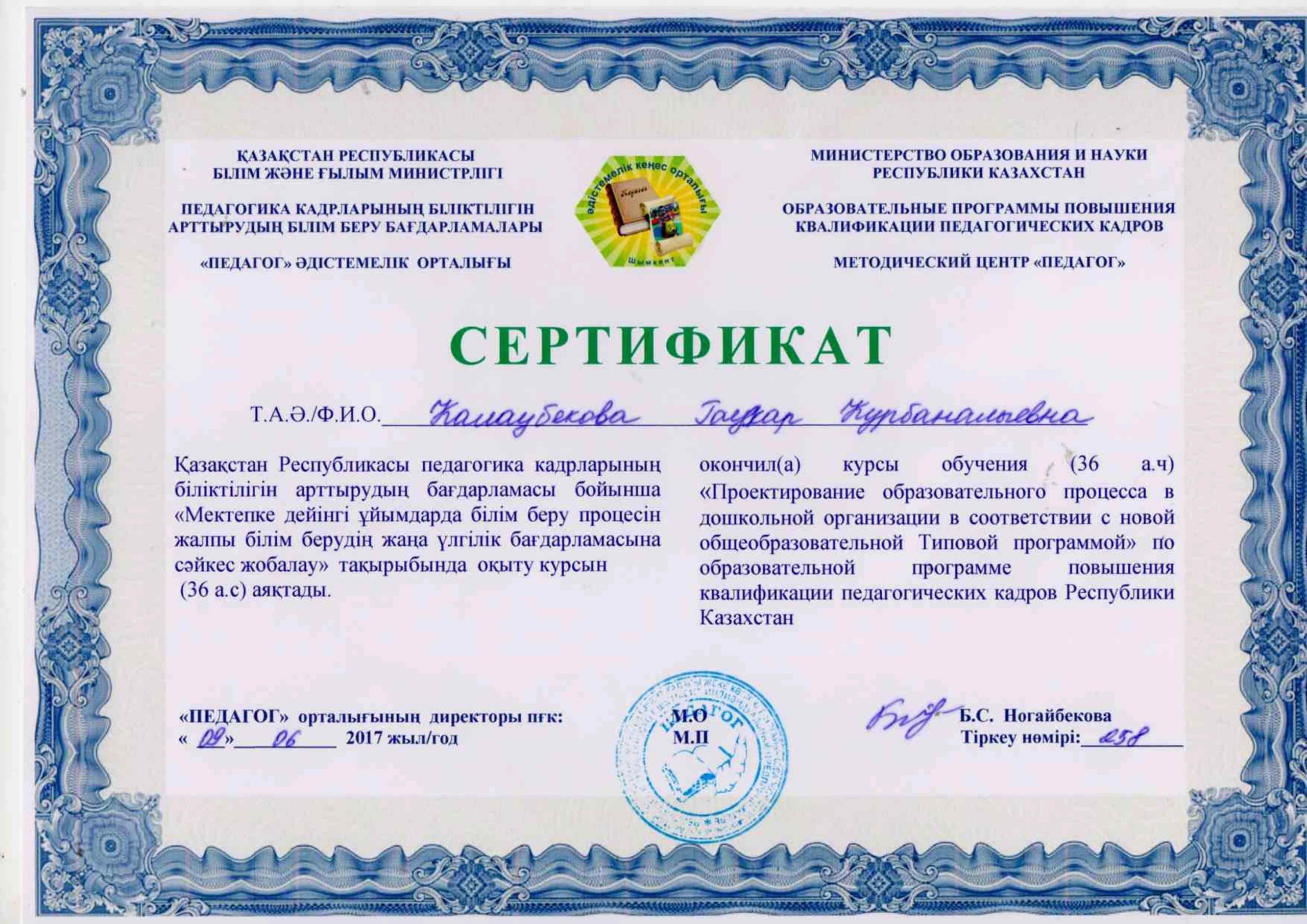 Педагогтардың сертификаттары