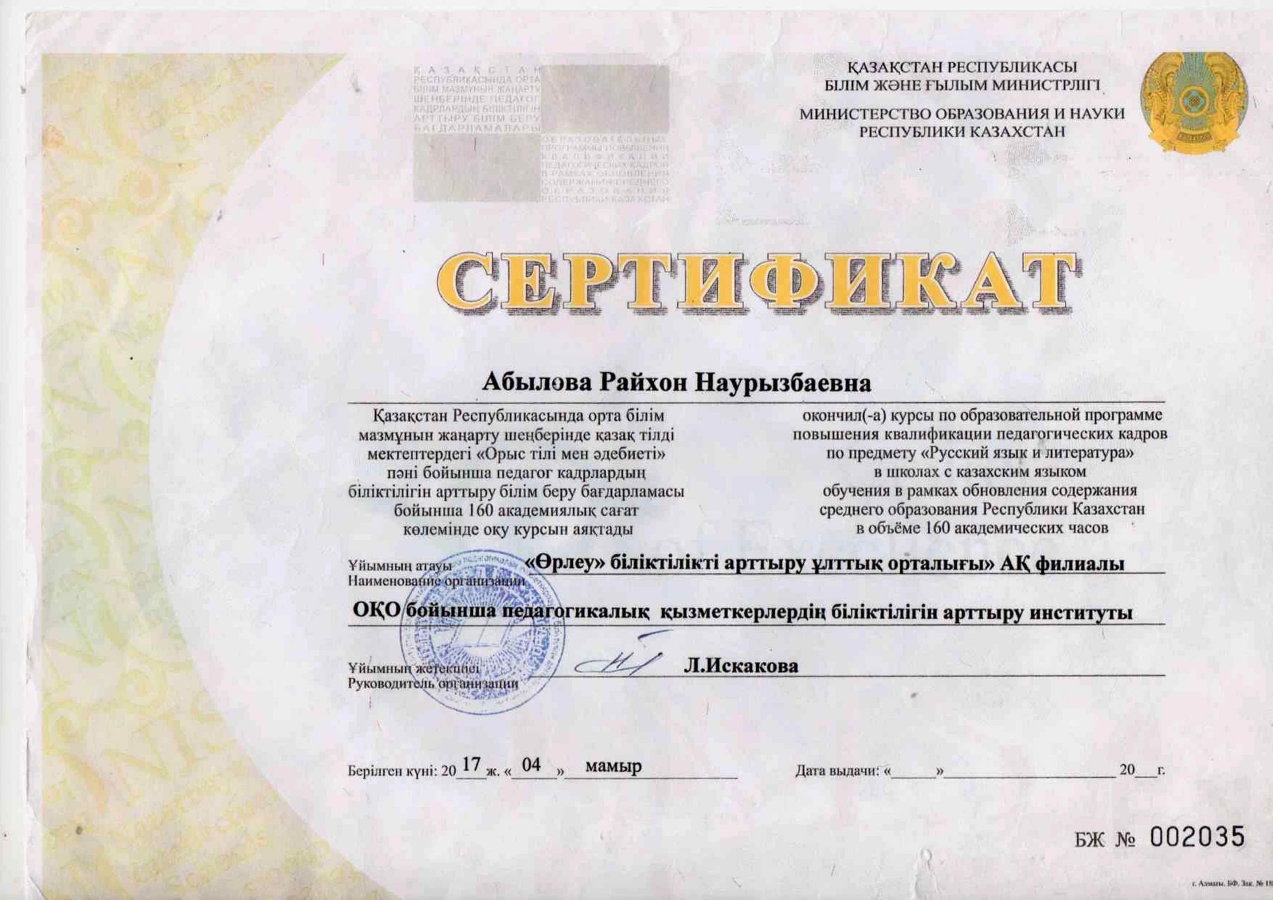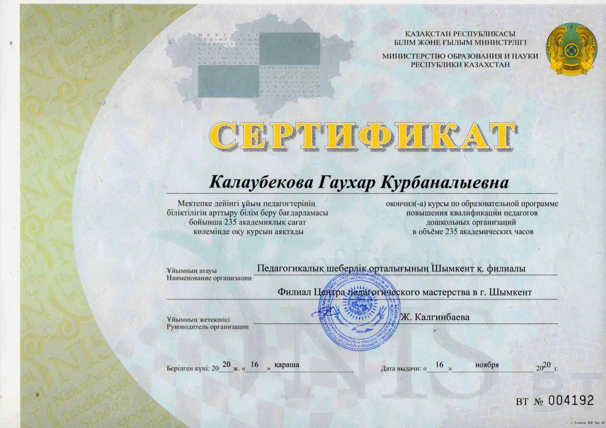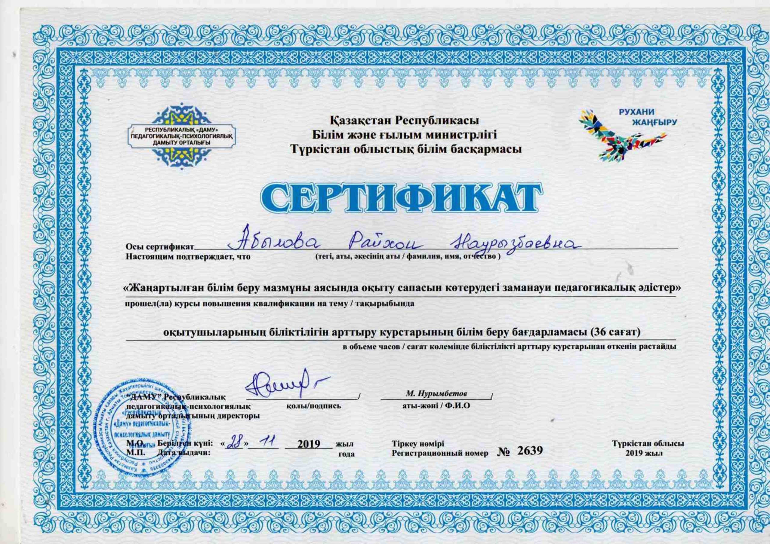 Педагогтардың сертификаттары