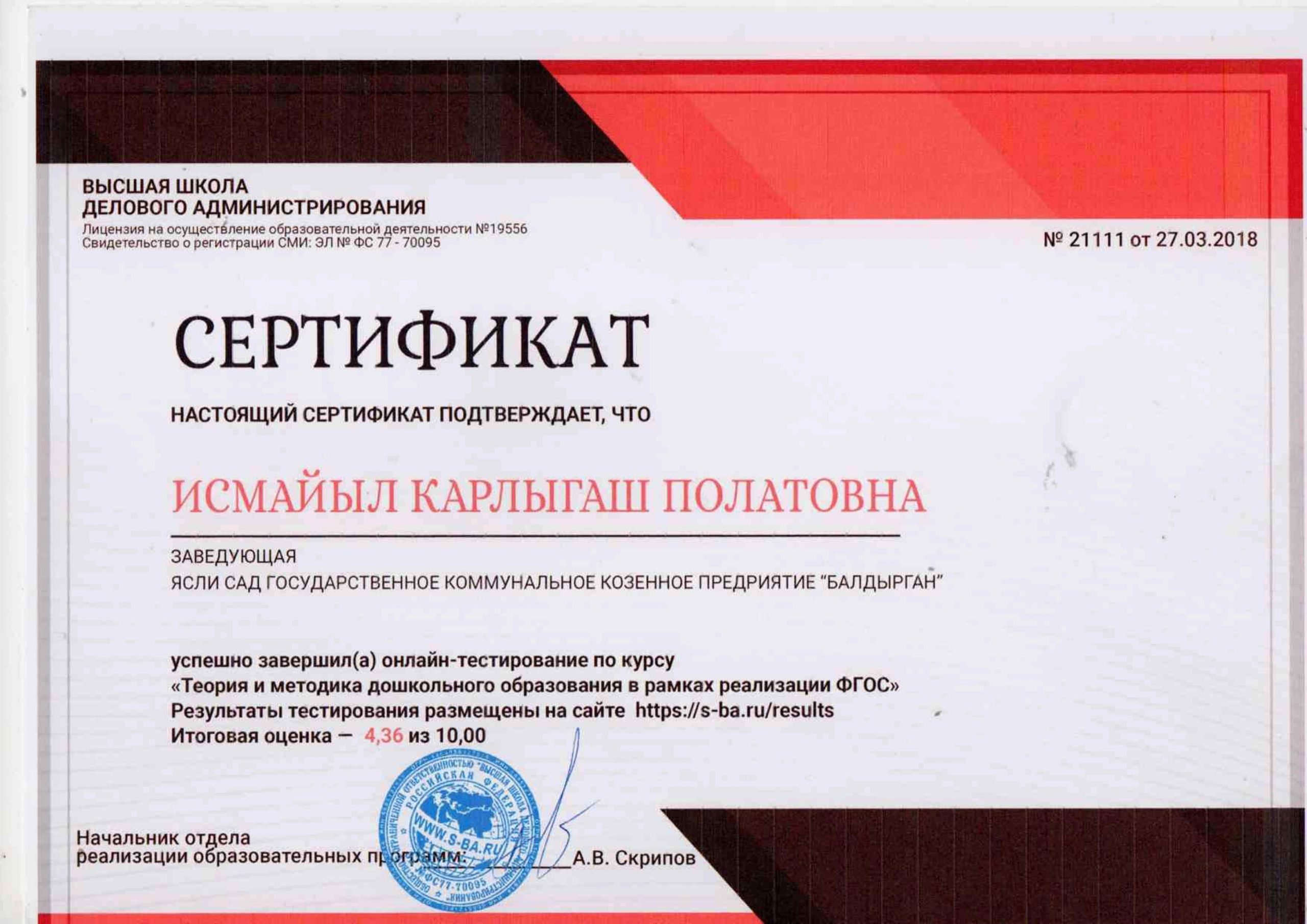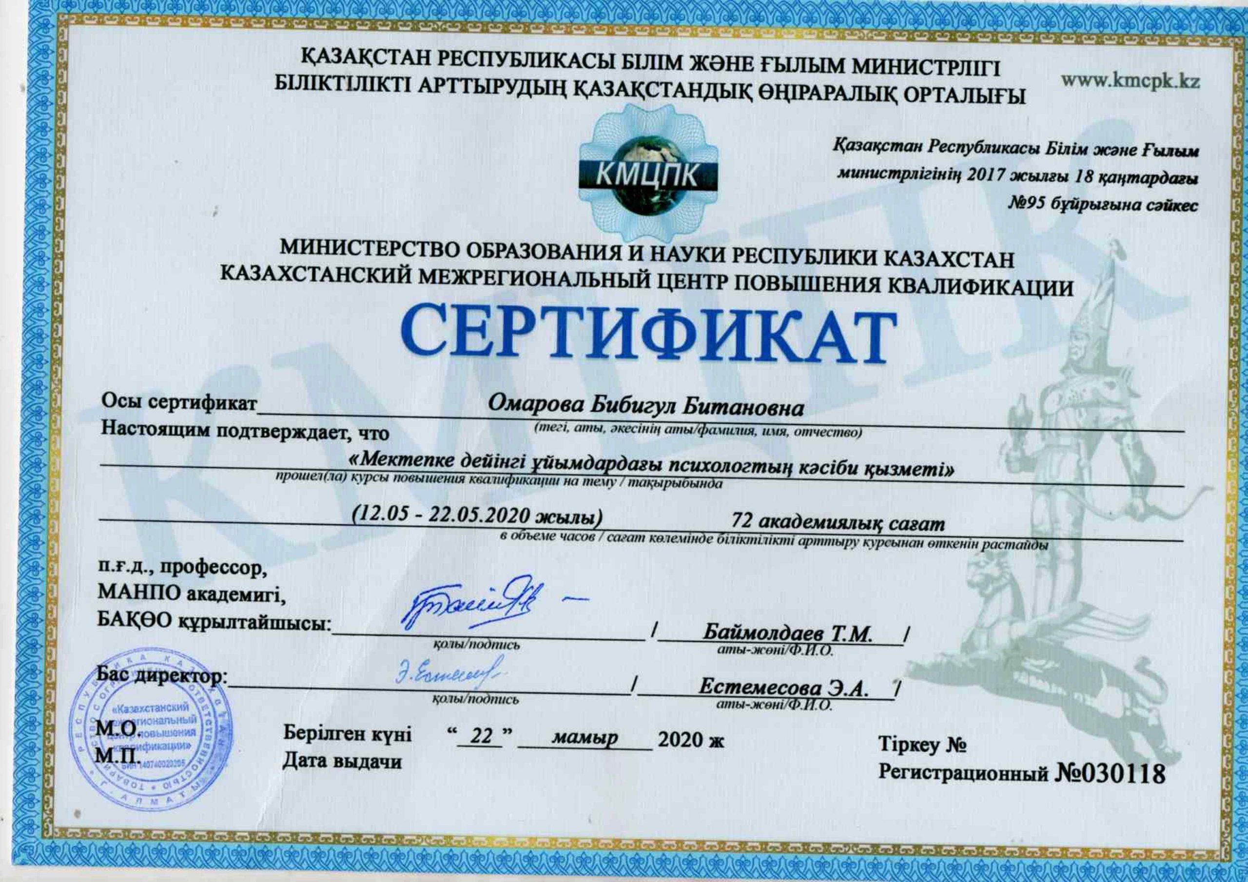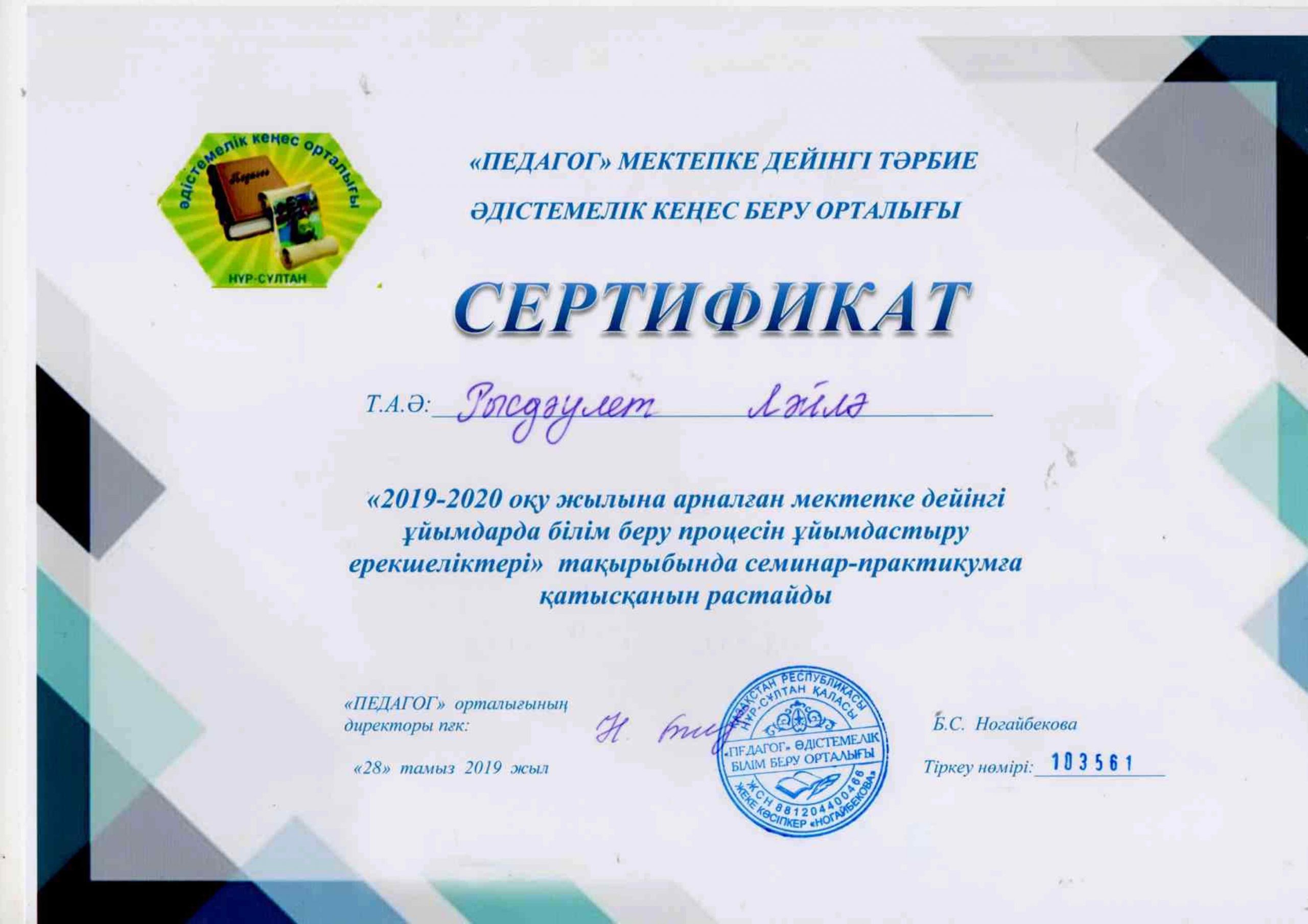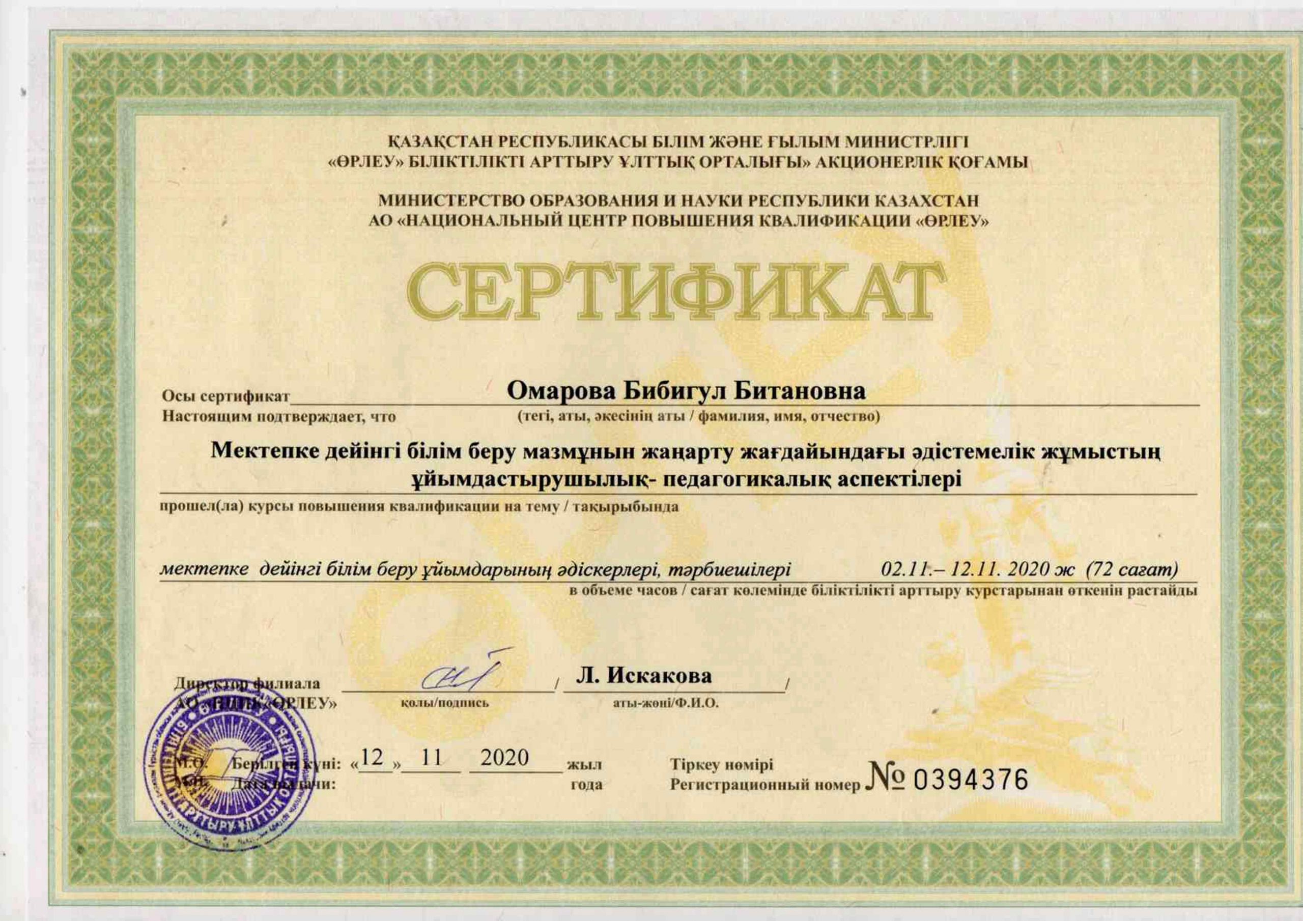 Педагогтардың сертификаттары