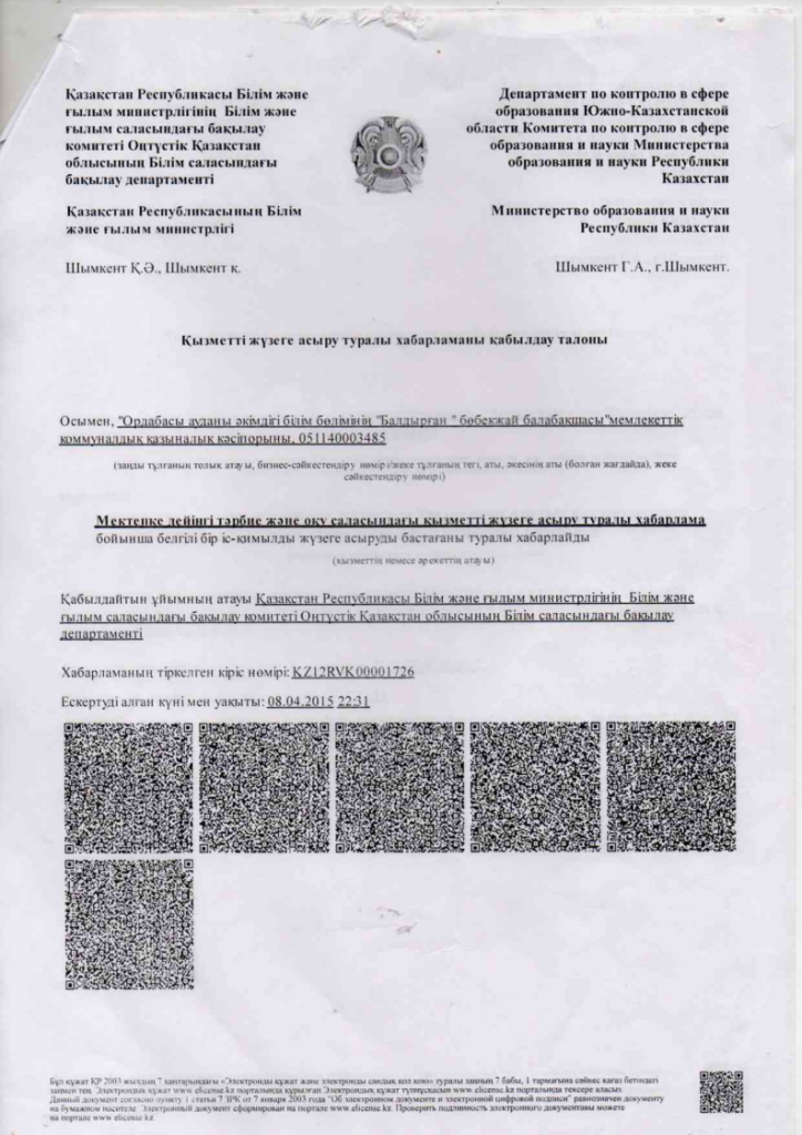 • Балабақша туралы мәлімет